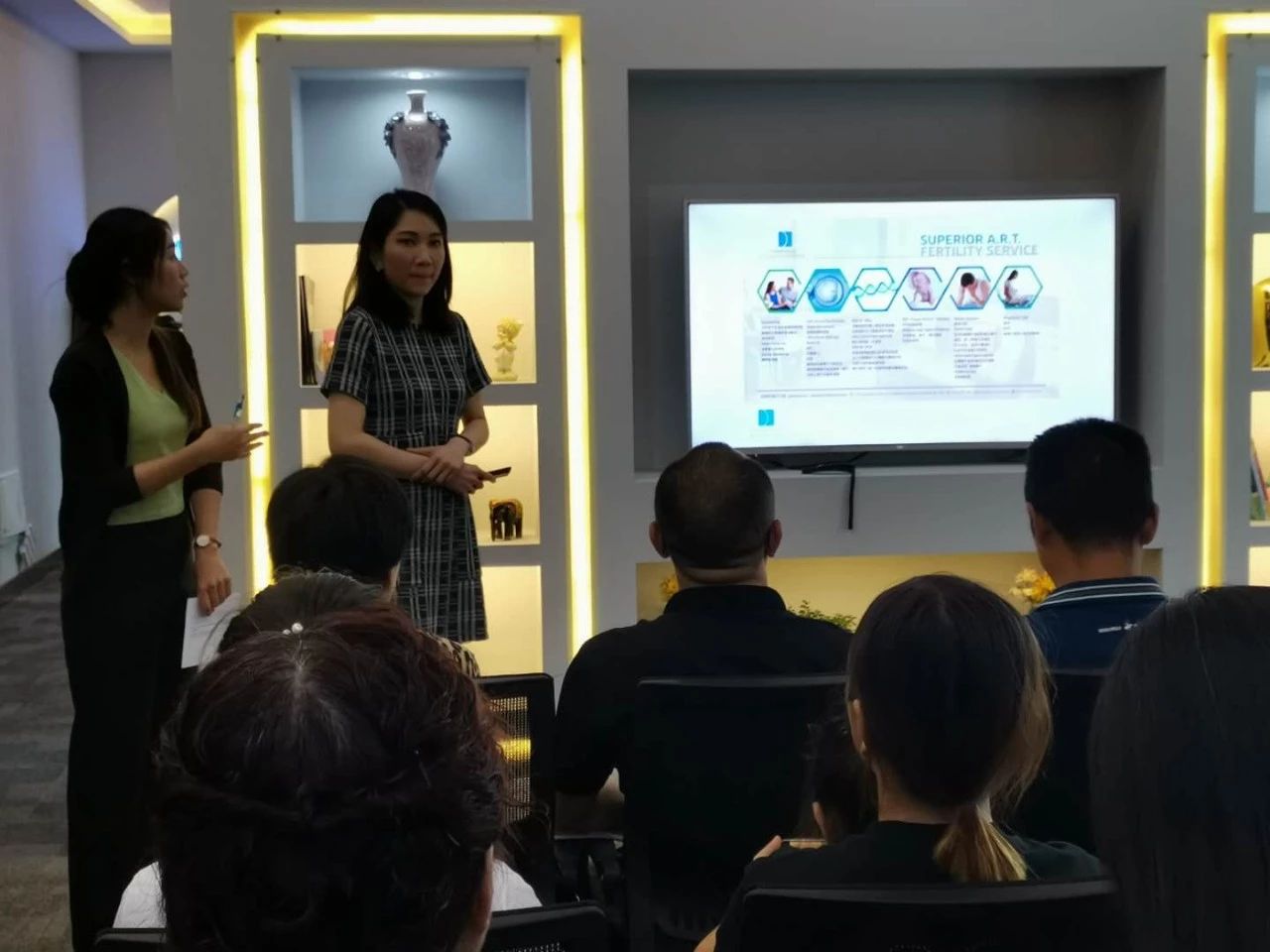 面诊前,爱泰中国区负责人,泰国曼谷总部代表,燕尾娜医生分别像客户打招呼,燕尾娜医生为所有用户进行了第三代试管婴儿技术的普及,从技术和流程
